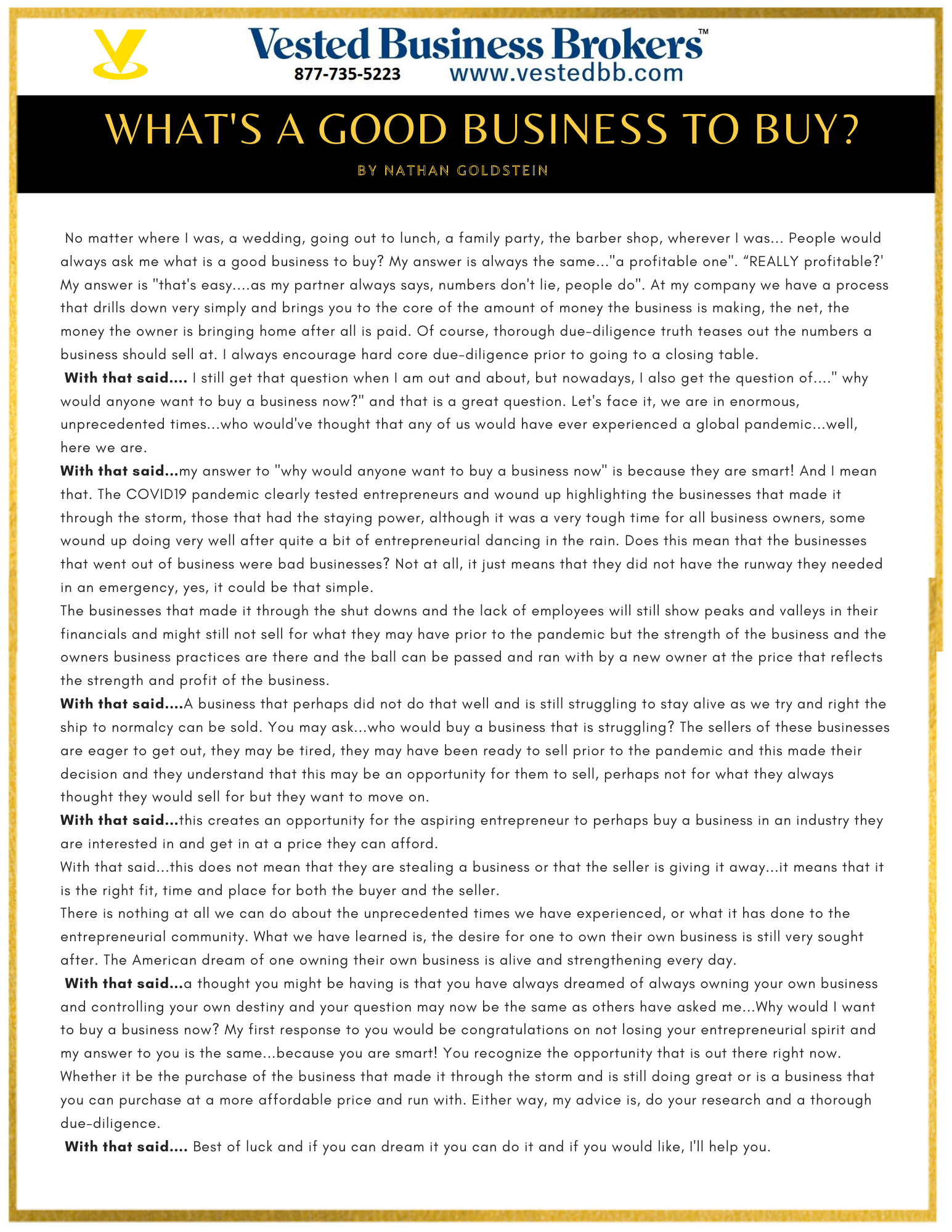 Learn how to buy a business at www.VestedBB.com