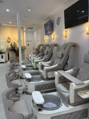 The salon includes 10 spa pedicure chairs, 7 manicure stations, 2 private treatment rooms, a reception and refreshment area, full POS system, and a complete inventory of top-quality supplies.