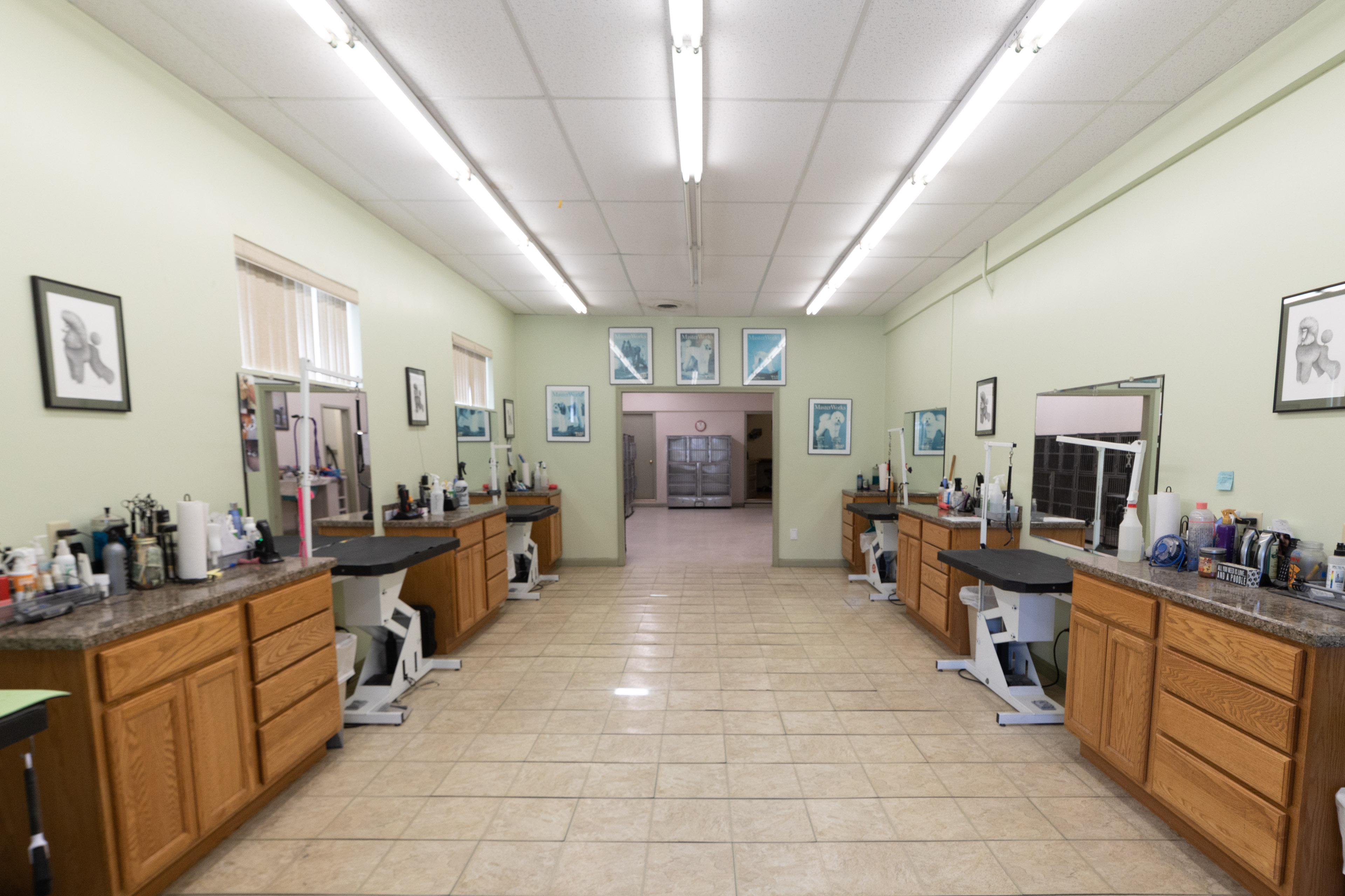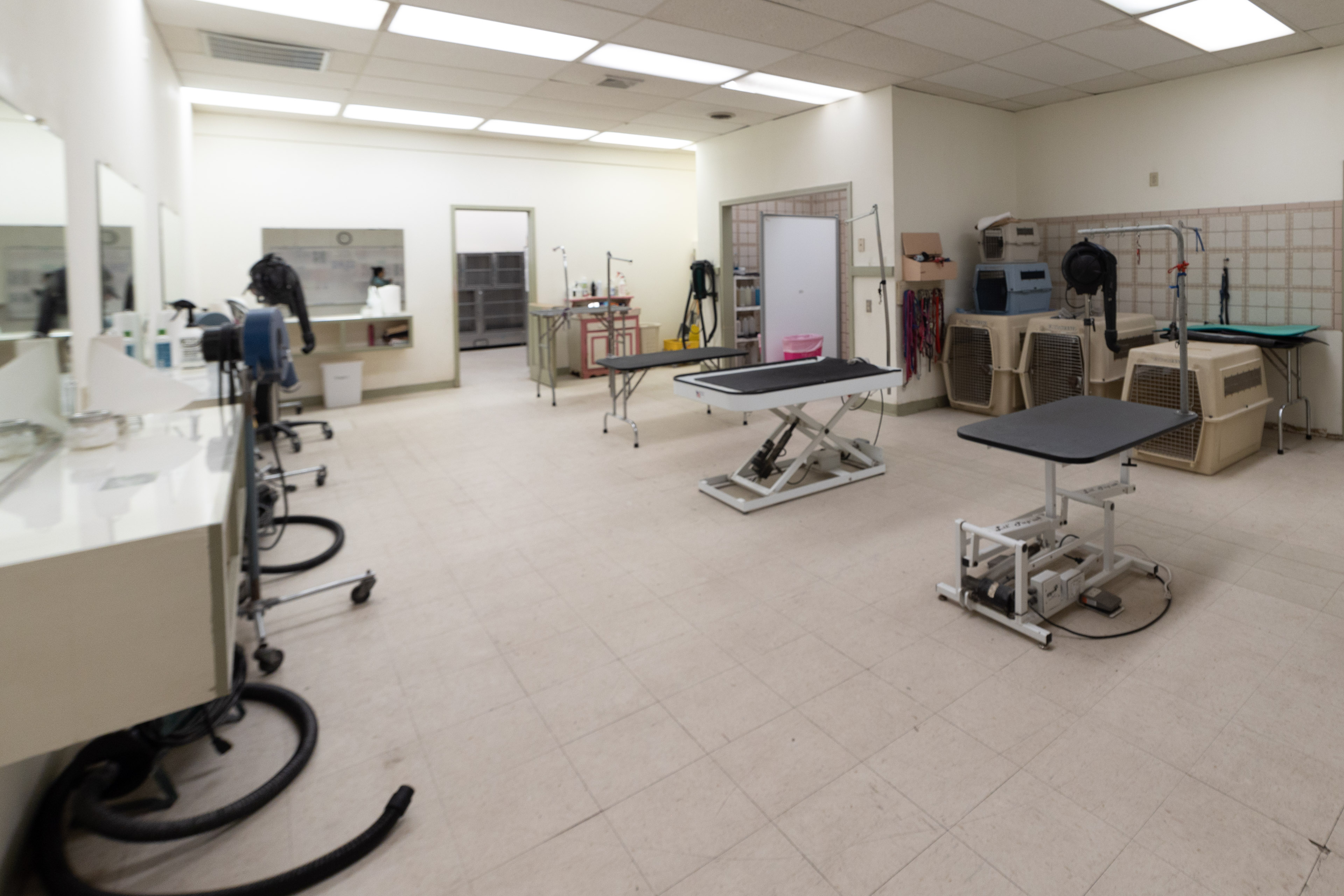There are staff that prep the animals and also professional groomers. There are 6 grooming stations.